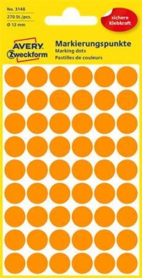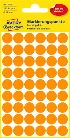 Etikett, 12 mm, kör, AVERY ZWECKFORM, neon narancs, 270 etikett/csomag