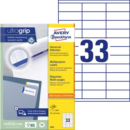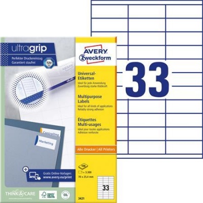 Etikett, univerzális, 70x25,4 mm, AVERY ZWECKFORM, 3300 etikett/csomag