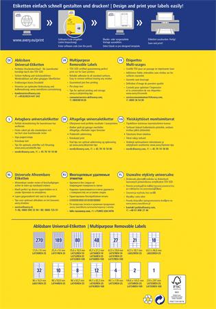 Etikett, univerzális, eltávolítható, 45,7x21,2 mm, AVERY ZWECKFORM, 480 etikett/csomag